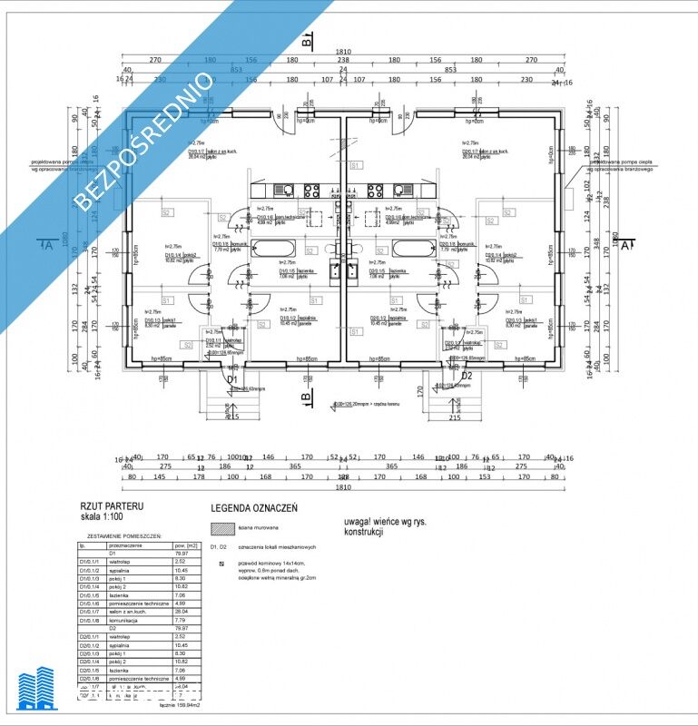 Przedmiotem ogłoszenia jest dom jednorodzinny dwulokalowy, o powierzchni użytkowej 79,97 m2 na lokal, możliwość adaptacji poddasza 25 m2. Nieruchomość jest położona wśród 5 domów parterowych, z czego 3 to nasza inwestycja. Druga linia zabudowy.