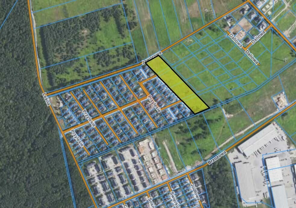 Teren budowlany w Domaszczynie składający się z sześciu działek o łącznej powierzchni 8763 m2. MPZP.